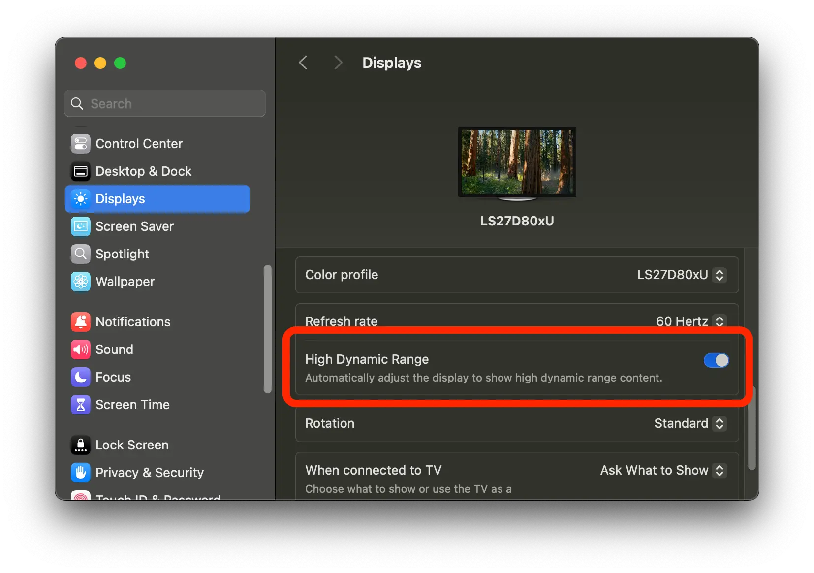 Các bạn dùng MacOS mà kết nối với màn hình ngoài thì để ý xem có tuỳ chọn bật chế độ này lên không nhé! Hôm qua ngựa ngựa thử bật lên thấy màu sắc nó tươi hơn hẳn. Màn thì mua cả năm nay rồi, ViewFinity S8 không đến nỗi nào nhưng cắm vào thấy màu nó cứ bị nhợt nhạt mà không biết tại sao, rõ nhất là đang nhìn màn rời thì quay sang nhìn vào màn Macbook nó khác biệt hẳn. Trong khi chỉnh chế độ trong cài đặt của màn cũng chẳng ăn thua.